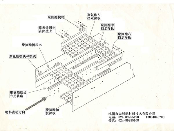 聚氨酯篩闆設計靈活,結構多樣,安裝方式簡便,常見的有軌座式(也叫鎖扣式,根據鎖扣的樣式不同,又細分爲幾種),用軌座鎖緊篩闆,篩機篩壁兩側(cè)再用側(cè)壓木和楔塊固定,也可用銷釘或者用螺栓配合壓闆直接固定於(yú)篩機上。